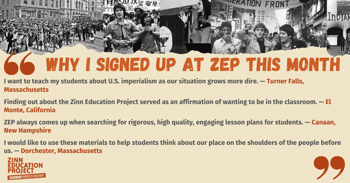 - We love hearing how people found us and why they’ve signed up to access people’s history lessons from the Zinn Education Project. Here are a few of the hundreds of comments educato...
